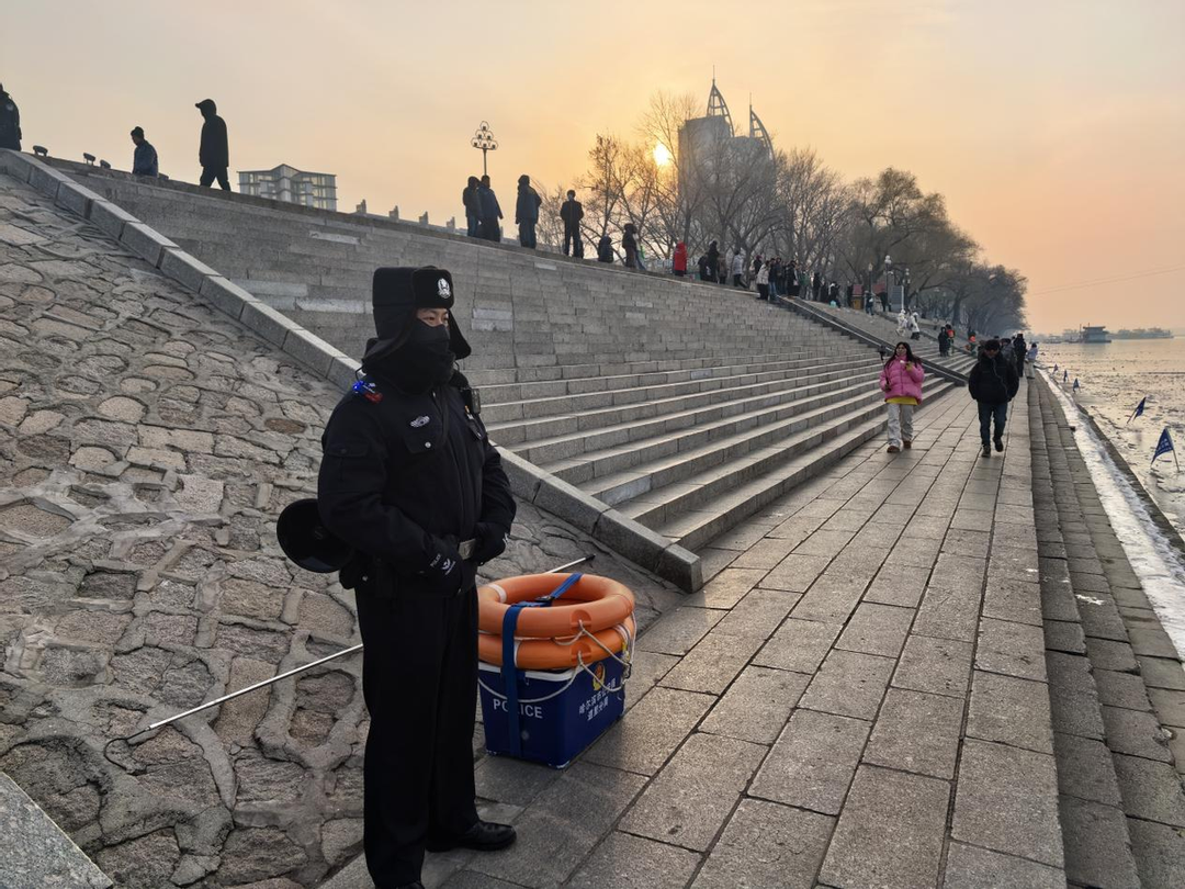沿江一线派出所主动作为,全面开展江畔安全隐患排查工作。重点检查沿江安全警示牌、警示旗等防护设施是否完好,对破损、缺失的设施及时增补、更换;组织警力对冰层状况进行动态监测,标记薄冰区、冰缝等危险点位,建立隐患台账;主动对接相关职能部门,推动老旧防护设施升级改造,从源头阻断涉冰安全风险,为市民游客打造安全的江畔环境。
