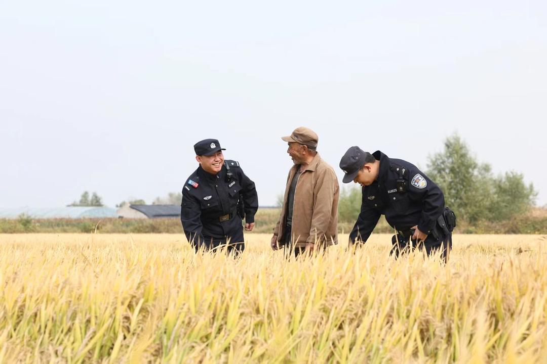 “王大爷,今年的收成怎么样?咱们在操作农具时,一定要做好安全防护,有情况随时联系我们!”针对秋收期间农田区域人员、车辆、农机具流动密集的特点,民主派出所通过“车巡+步巡”相结合的方式优化警力部署,提升重点区域、重要部位巡逻的巡逻密度与频次,提高见警率、管事率,让群众时刻感受到警力就在身边,切实提高群众安全感。在巡逻过程中,民警辅警还积极开展安全宣传,提醒群众注意工作防护,增强自我保护意识。