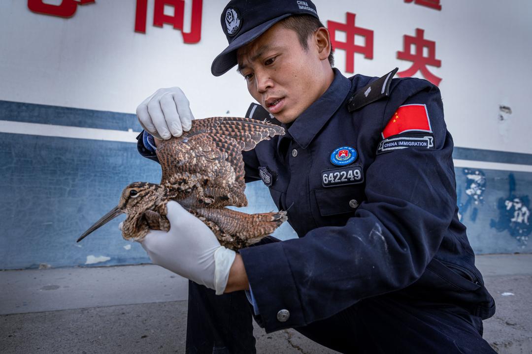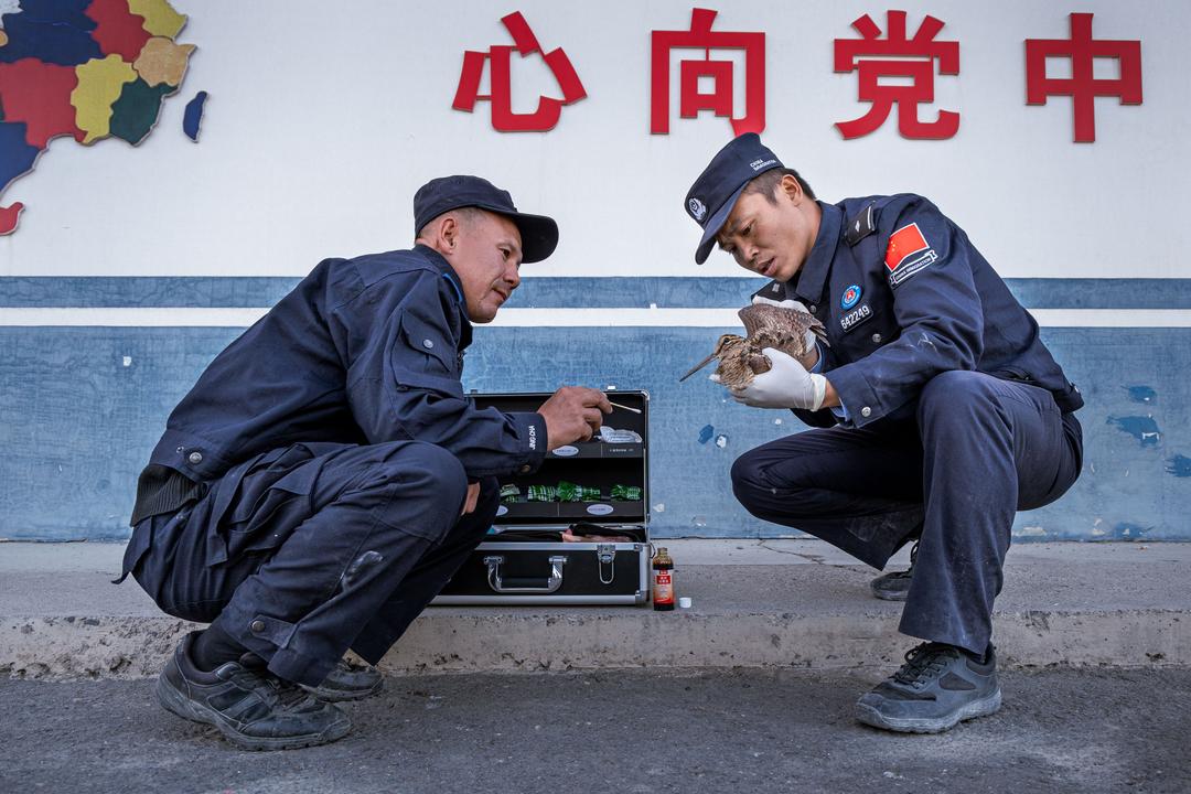 共工新闻社10月15日电(通讯员:陈相延)10月14日,新疆出入境边防检查总站克州边境管理支队吐古买提边境派出所民警在执行辖区巡逻任务时,发现一只野生鸟类蜷缩在地,无法飞行。
