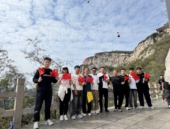 当职工们陆续登上山顶,眼前的景色瞬间令人心旷神怡。极目远眺,远处的山峦连绵起伏,与蓝天白云相互映衬,构成一幅绝美的山水画卷;近处,城市的风貌尽收眼底,展现出一派繁荣昌盛的景象。职工们难掩心中的激动与自豪,纷纷拿出事先准备好的小国旗,用力挥舞着,合影留念。那一张张笑脸上,洋溢着对祖国的热爱与祝福,也为中秋佳节增添了浓浓的节日氛围。