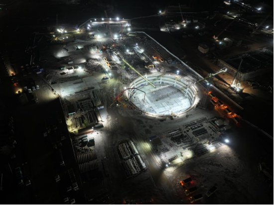 钢筋的笔直在灯光抚弄下续写筑梦篇章,与浩瀚星穹交相辉映,为热火朝天的建设夜缀满希望星芒。泵车上的机械臂向穹顶“挥臂致意”,细致地将混凝土注入模板;破土而出的钢结构沾着焊花、裹着混凝土清香,与中交一航局建设者对远方的牵挂一道,在月下悄然绽放。“瞅瞅这封顶浇筑,多齐整!”有人赞叹。假以时日,这座小巧精致的转运站,必将与这份海外坚守一同熔铸进“精品工程”,成为最浓墨重彩的一笔。