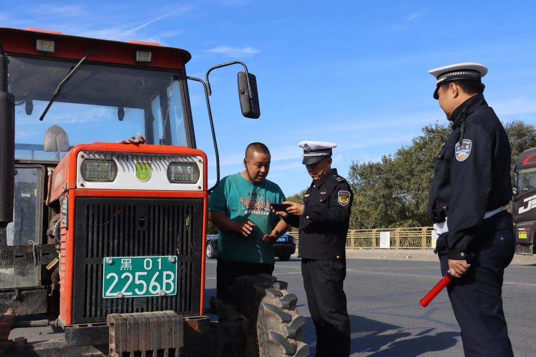 共工新闻社10月14日电(朱善永 陈常林)为切实做好辖区秋收农忙时节道路交通安全管理工作,宾县公安局立足辖区秋收季农村道路交通实际与群众出行规律,紧扣秋收“收、运、储、销”全流程关键节点,将工作重心向秋收现场前移,深入田间地头、走进农户家中,通过强化宣传引导、隐患排查整治、动态巡逻防控,全方位开展安全预防工作,为秋收安全生产筑牢交通安全屏障。