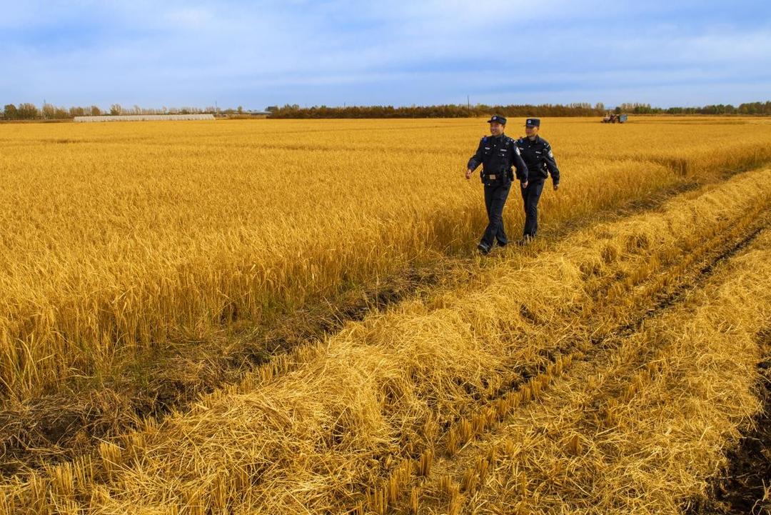 秋收工作仍在有序推进,香坊分局的民警辅警们依旧穿梭在田间地头,用脚步丈量平安,用行动守护丰收,让警徽在金色的田野上闪耀,为辖区农户筑起一道坚实的“平安屏障”。