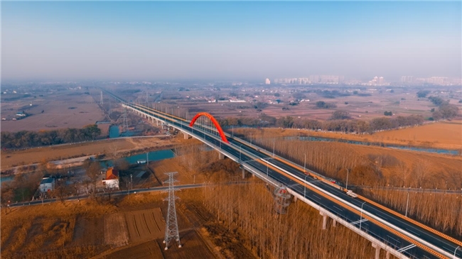 該專案位於河北省滄州市,道路全長5.63公里,雙向4車道,設計車速60公里,線上建有橫跨京滬高速公路的跨京滬大橋,及當地新網紅打卡地——南運河大橋。專案主要建設內容包含道路工程、交通工程、橋涵工程、照明工程、綠化工程等。